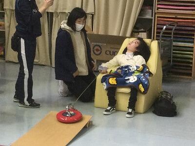 自分の力で「えいっ」と押して発射!高得点を出しました。